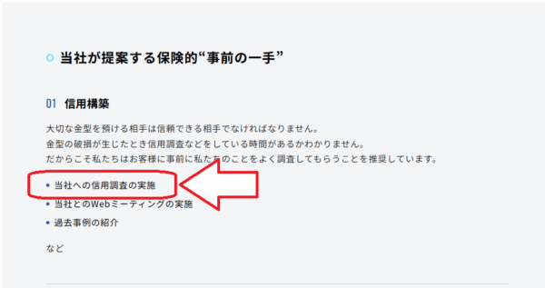 だからこそ、私たちは「私たちのことを事前に調べてください」という意味で私たちに対する信用調査をお客様に推奨しているのです。