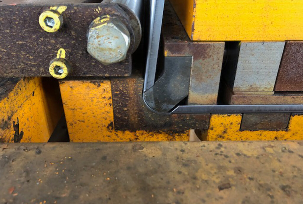 曲げ専用装置の曲げ幅の改造です。曲げ部の駒を調整し、曲げ幅を変更しました。金型設計図無しの案件でした。