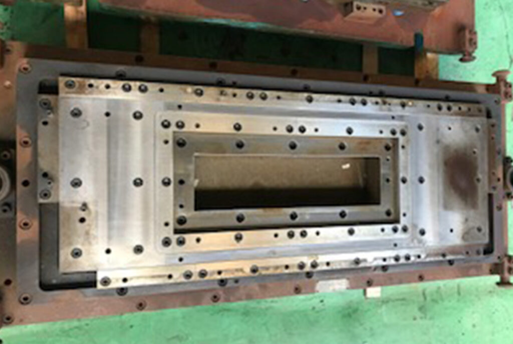 設計変更に伴う、バーリング形状の変更の改造です。金型サイズはRL800 x FB350 x DH360。金型設計図無しの案件でした。